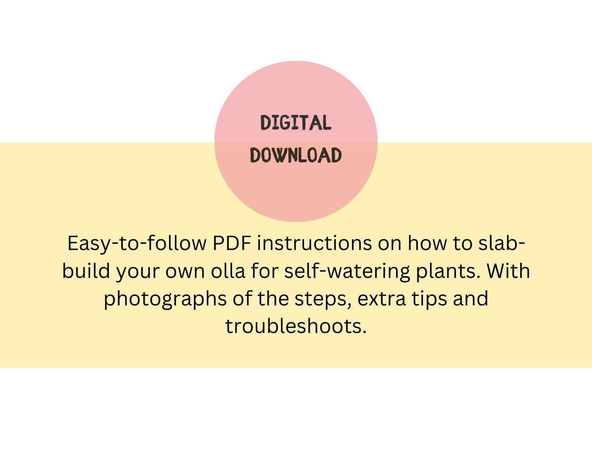 This digital download provides you with a stencil and step-by-step instructions to produce your own olla - a practical tool to water your plants. It is a beginner friendly guide using the method of slab building with clay. Includes detailed pictures, a list of materials, further tips and tricks, as well as a helpful troubleshooting page.