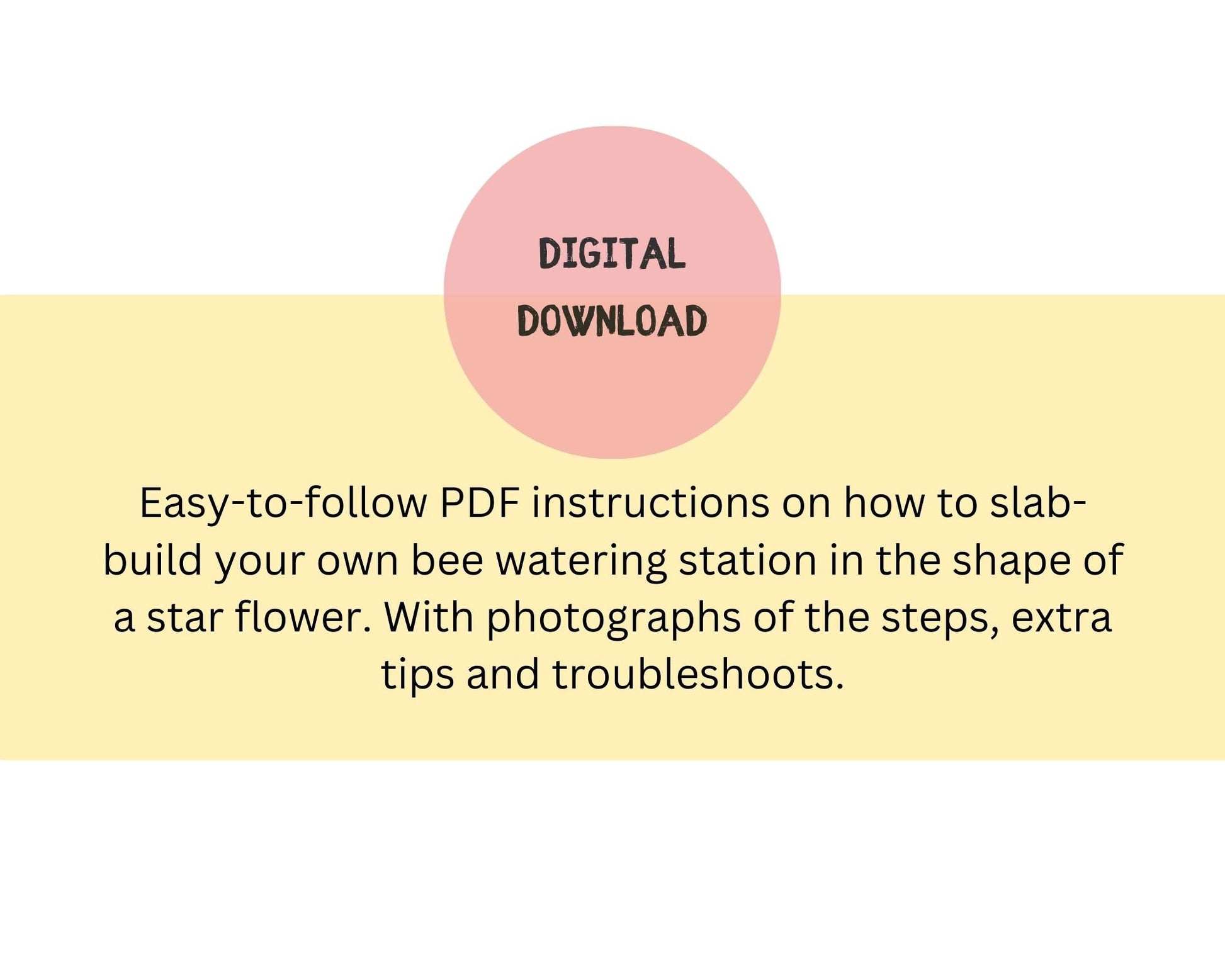 This digital download provides you with a stencil and step-by-step instructions to produce your own bee watering station in the shape of a decorative star-shaped flower. It is a beginner friendly guide using the method of slab-building with clay. Includes detailed pictures, a list of materials, further tips and tricks, as well as a helpful troubleshooting page.